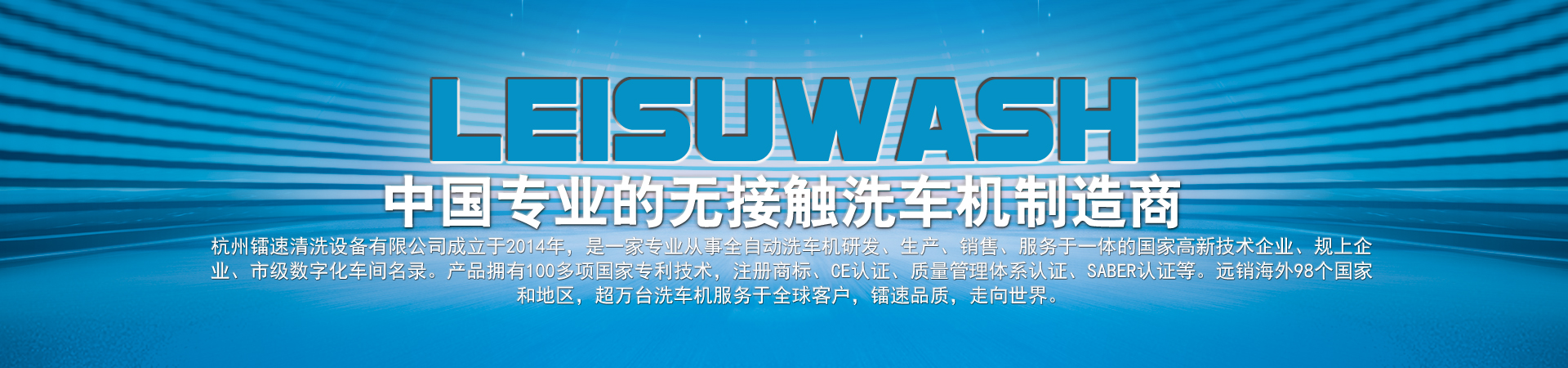 杭州鐳速清洗設備有限公司成立于2014年,是一家專業從事自動洗車機研發(fā)、生產、銷售、服務于一體的國家高新技術企業,注冊資金2000萬元。匯聚了一批專業的技術創(chuàng)新團隊,與時俱進,不斷創(chuàng)新,研發(fā)生產出質量過硬、技術領先的全智能電腦洗車設備,是國內集洗護一體全自動汽車清洗系統的開拓者和領跑者。 鐳速公司一步一個腳印,一步一個臺階,通過不斷的努力和鉆研,厚積薄發(fā),從一家名不經傳的小企業,走到今天,成為中國洗車機行業出口最多的企業。鐳速品質正逐步成為中國洗車機行業的高品質代名詞,真正進入國際一線洗車機行列,打造贏得全球信賴的中國品牌!